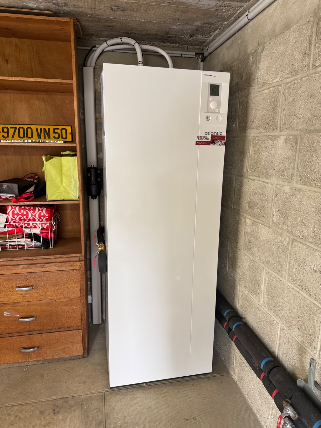 Remplacement d'une ancienne chaudière gaz par cette pompe a chaleur air/eau Atlantic compact avec son ballon d'eau chaude incorporé.